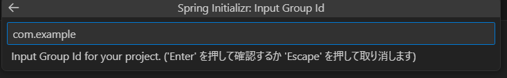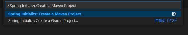 Ctl + Shift + Pをおしてコマンドパレットを表示し、「Spring Initializr:Create a Maven Project」を入力して実行してください