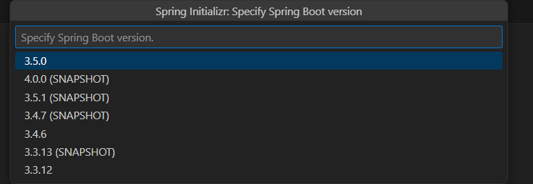 SNAPSHOTのついていない最新のバージョンを選択してください(画像では3.5.0)